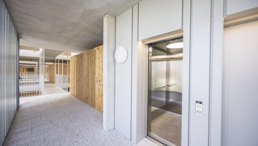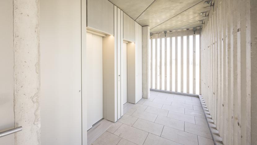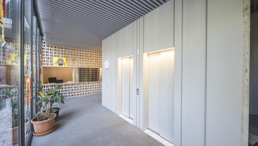 dos ascensores Orona Next Essentia conectan las 140 viviendas, asegurando accesibilidad, fluidez y confort en un entorno de alta densidad.