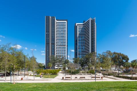 Las Torres Martiricos se alzan como dos referentes del nuevo skyline de Málaga, combinando usos residenciales y hoteleros en un conjunto vertical de carácter contemporáneo.