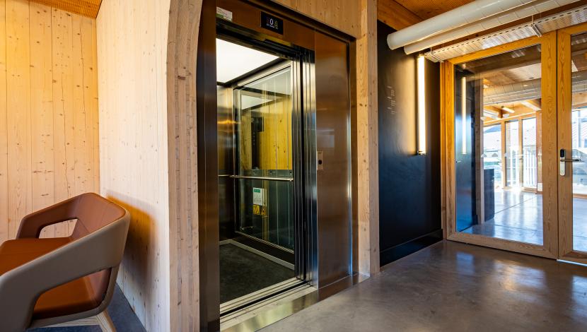 Pour garantir une mobilité confortable entre ses différents niveaux, le bâtiment intègre un ascenseur Orona X10, desservant 3 niveaux et offrant une capacité de 630 kg / 8 personnes. Son design compact et efficace s’adapte parfaitement aux besoins du centre, assurant accessibilité, fluidité et un déplacement sûr pour tous les utilisateurs.